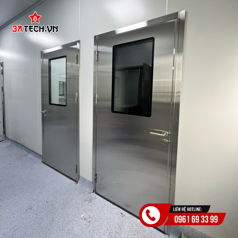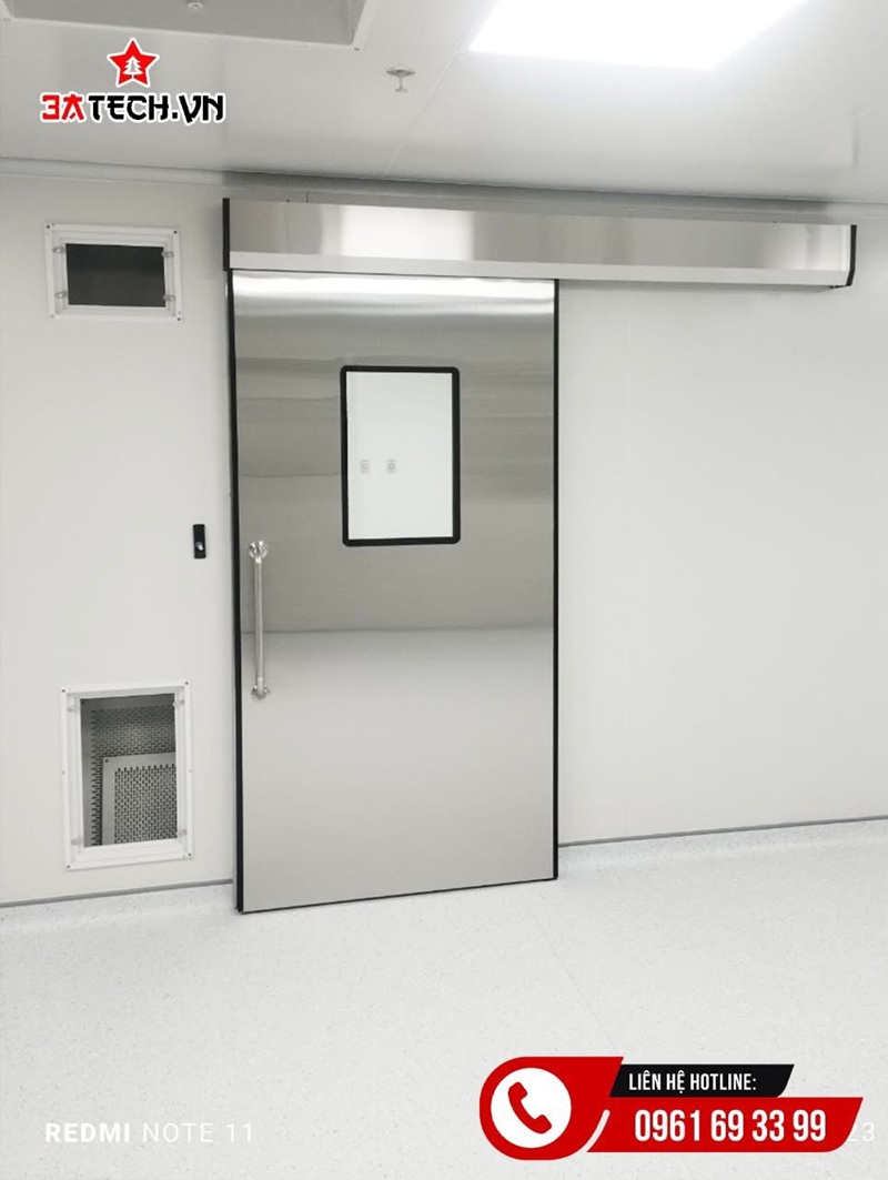 Ngoài ra, cửa phòng mổ còn góp phần kiểm soát áp suất phòng, đặc biệt trong các phòng mổ áp lực dương hoặc âm. Việc lắp đặt cửa phòng mổ đúng kỹ thuật giúp hệ thống HVAC hoạt động hiệu quả, đảm bảo luồng khí sạch được lưu thông đúng hướng theo thiết kế ban đầu của công trình y tế.